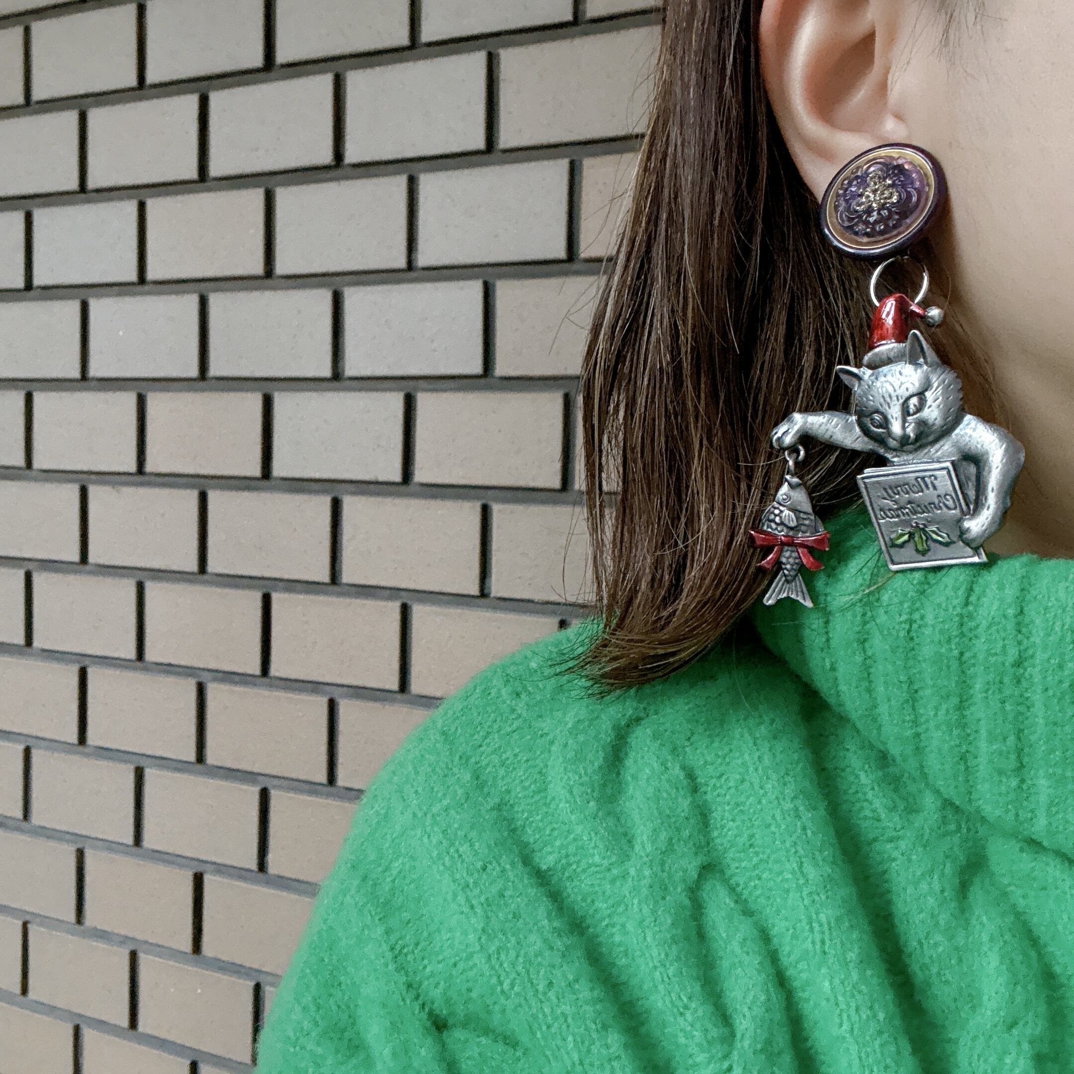 クリスマスのねことお魚◆イヤリング