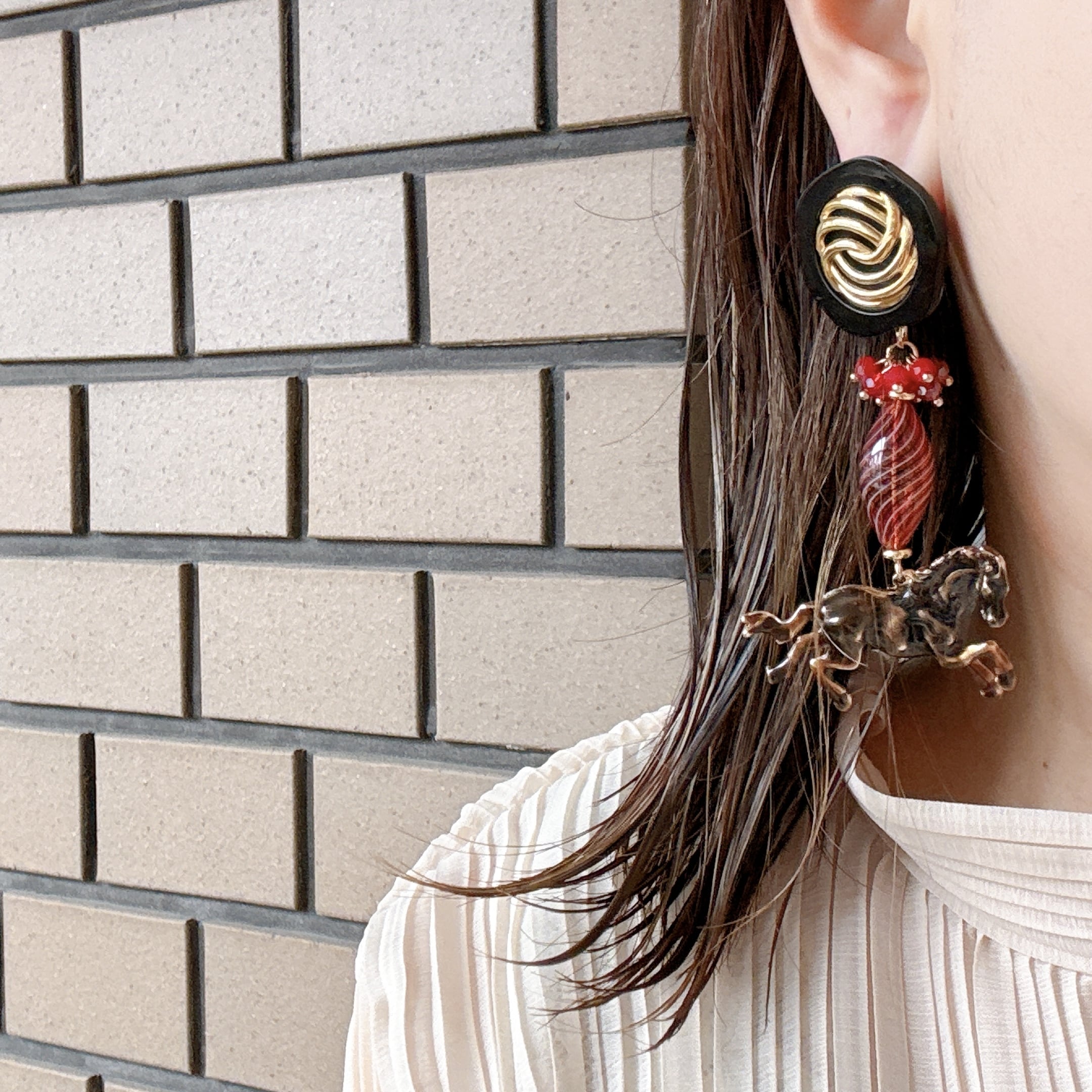 馬ヴィンテージボタン◆ピアス